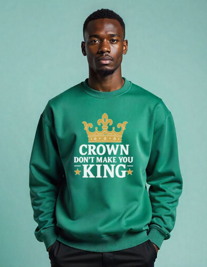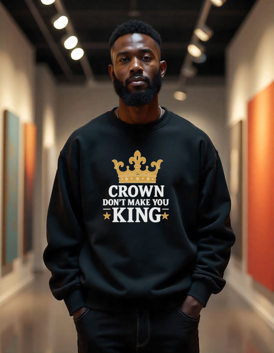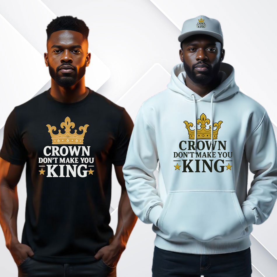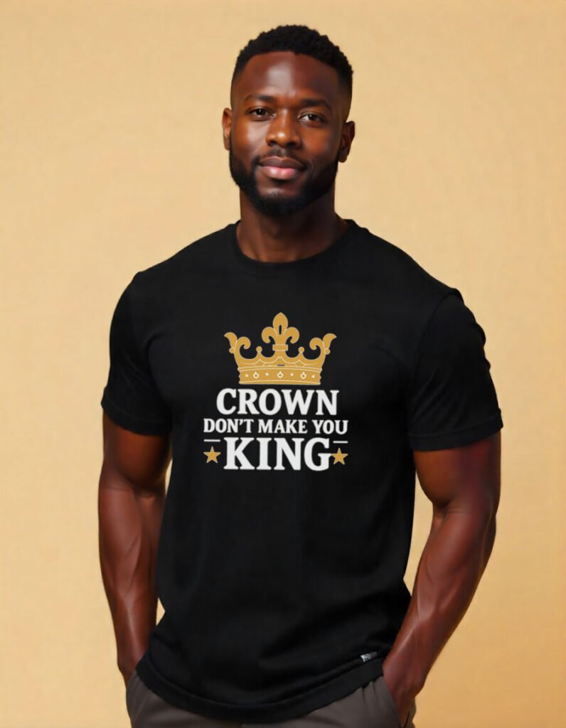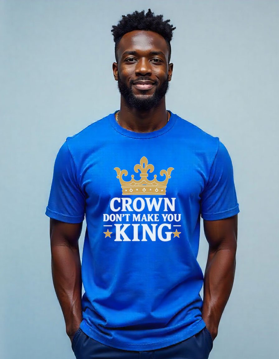 Make a statement that speaks louder than fashion. Our “Crown Don’t Make You King” tee is more than a shirt , it’s a philosophy. Designed for visionaries, change makers, risk takers, and truth seekers, no titles needed.
